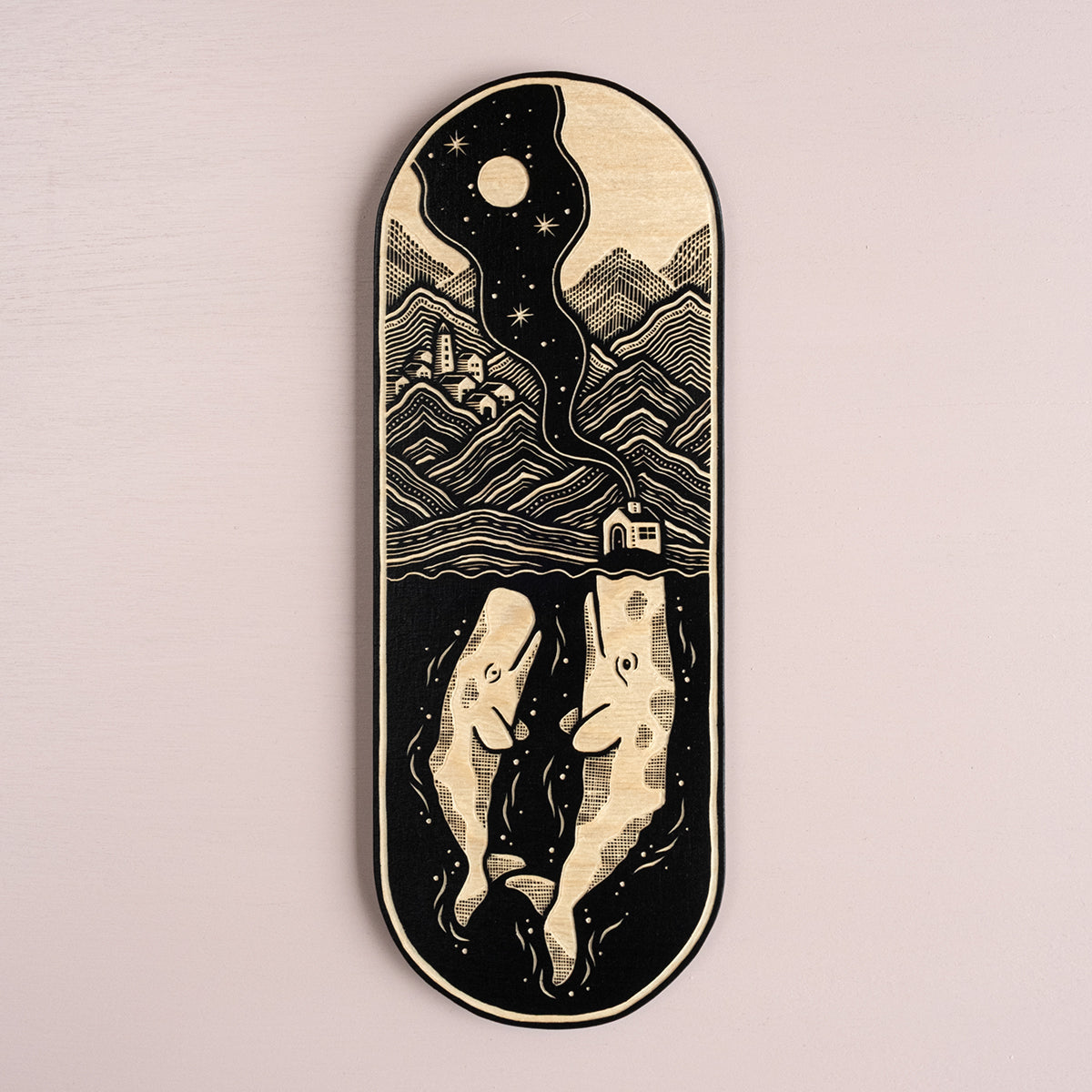 The woodcut comes ready to hang on your wall and is signed on the back.